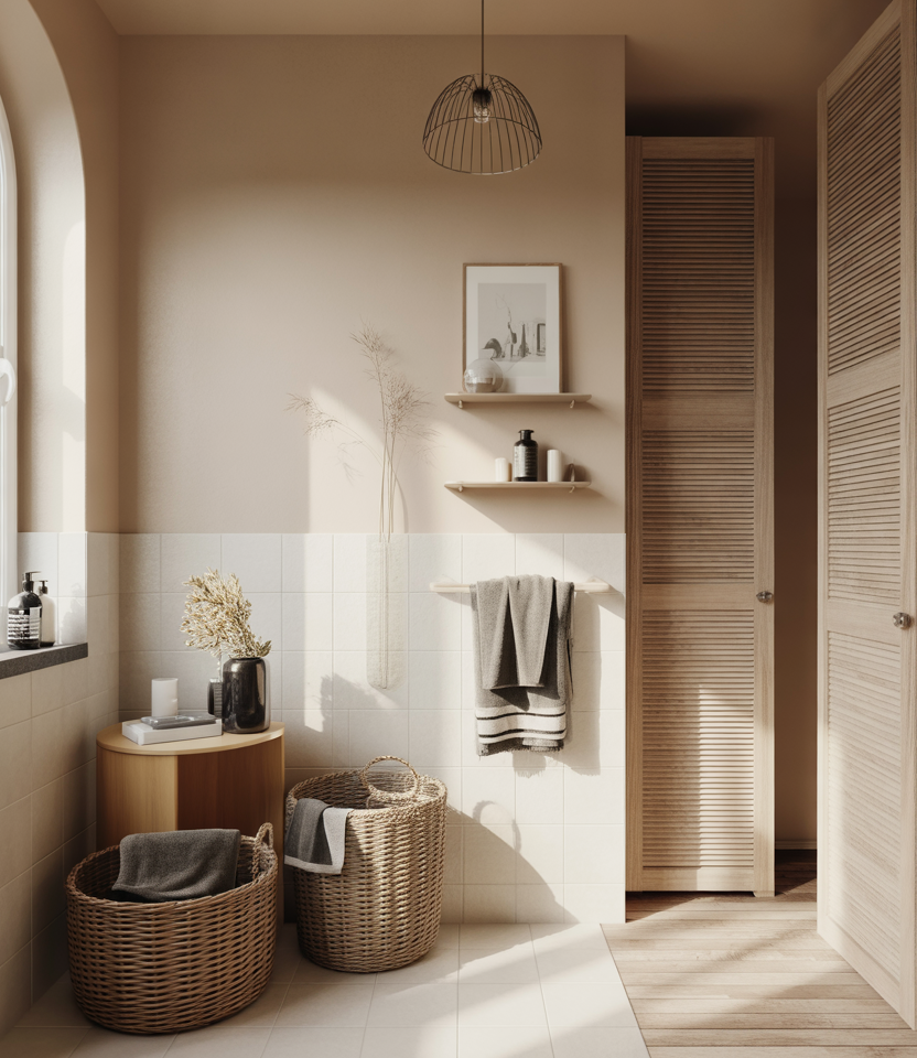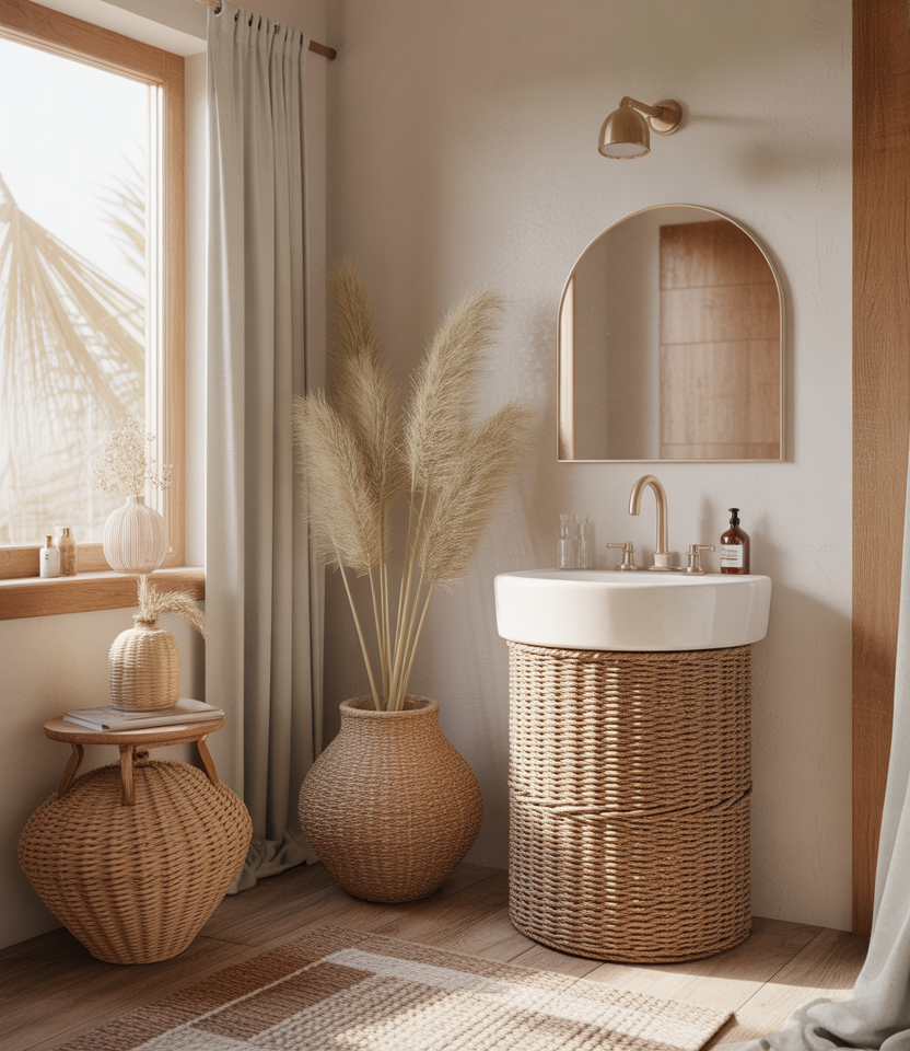 Boho bathroom decor in 2026 feels calmer and more intentional than in past years. Natural fibers, handmade ceramics, and soft textiles create a relaxed aesthetic without overwhelming the space. This style adds personality while still feeling suitable for everyday use.