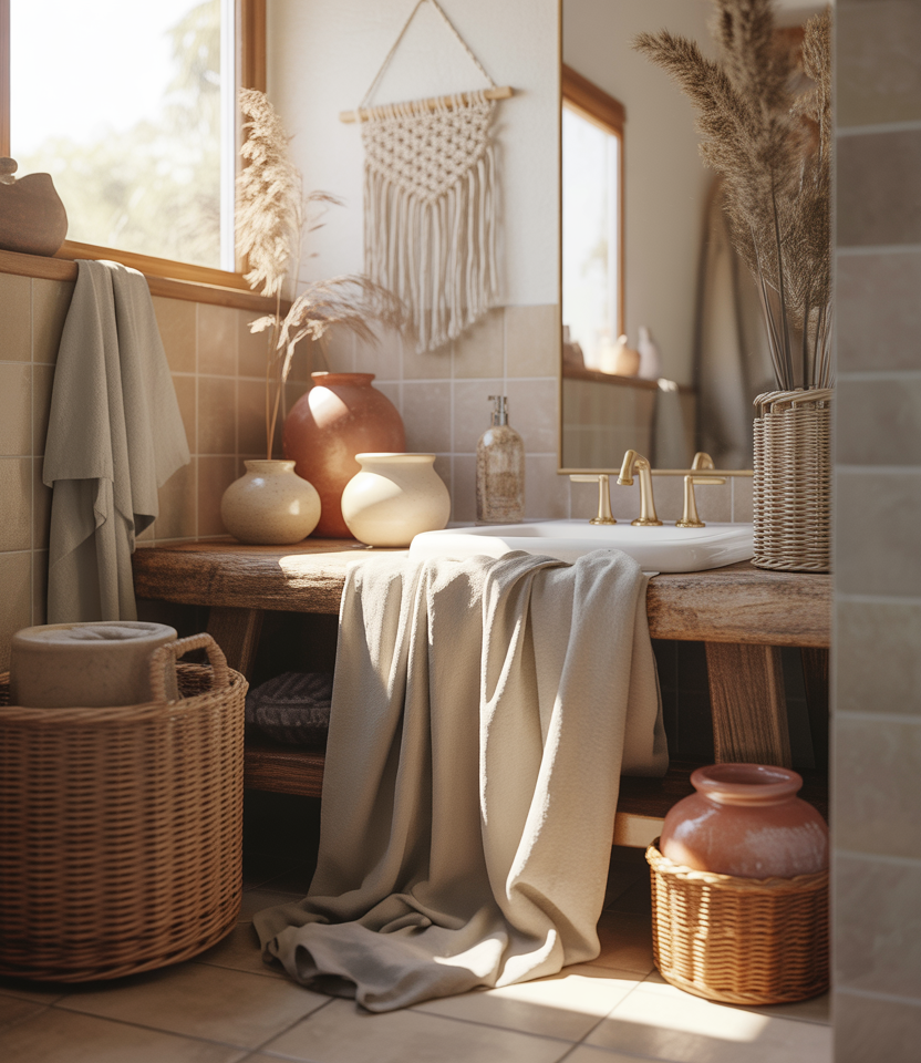 A micro anecdote often shared by homeowners is how boho decor makes their bathroom feel less rushed. Even short routines feel calmer in a softly layered space.