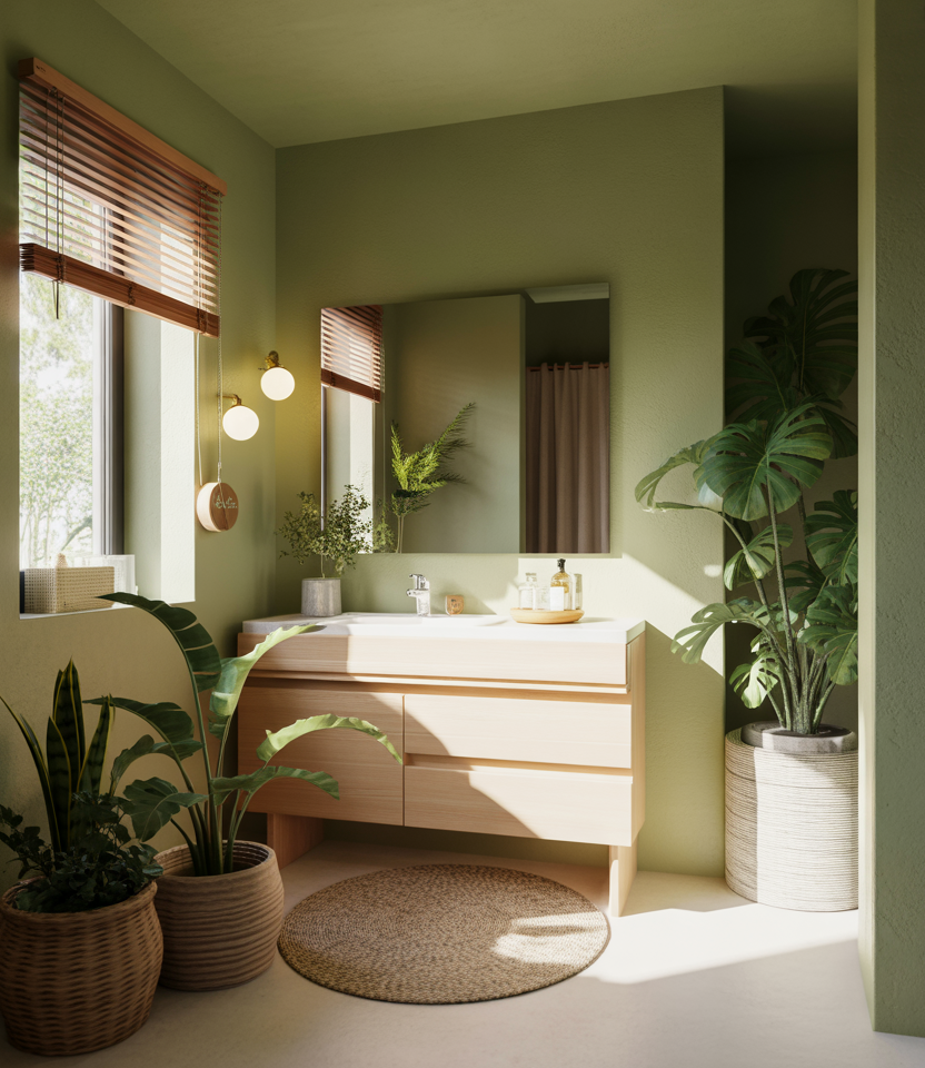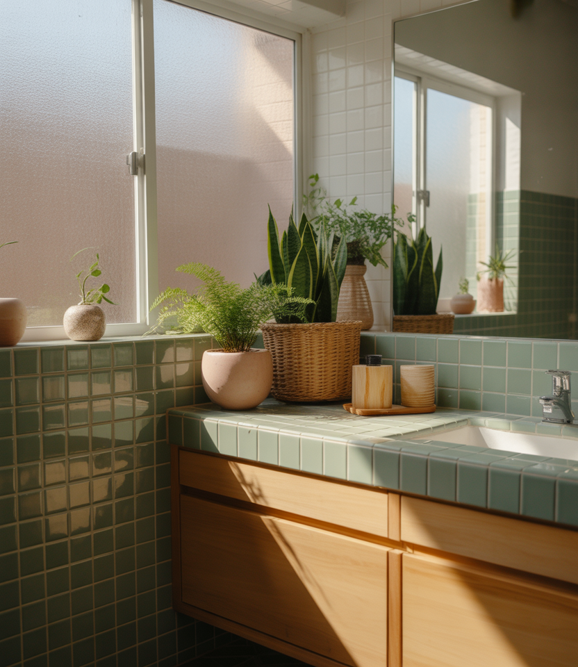 Adding green decor is one of the most refreshing bathroom trends for 2026. Plants, green ceramics, and botanical accessories soften hard surfaces while supporting a calm modern mood. Even small touches of green make bathrooms feel more relaxed and welcoming.