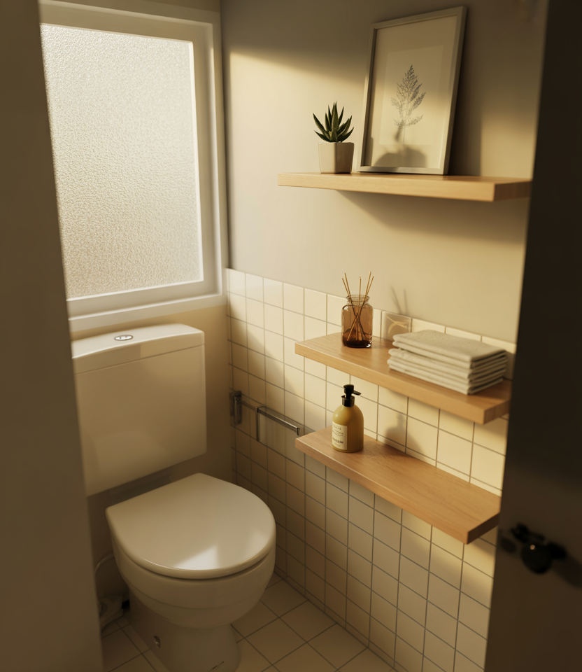 The area above the toilet is finally being treated as a decor opportunity. Small shelves, framed art, and minimal accessories add character without crowding the space. In 2026, this overlooked zone becomes part of the bathroom’s visual story.