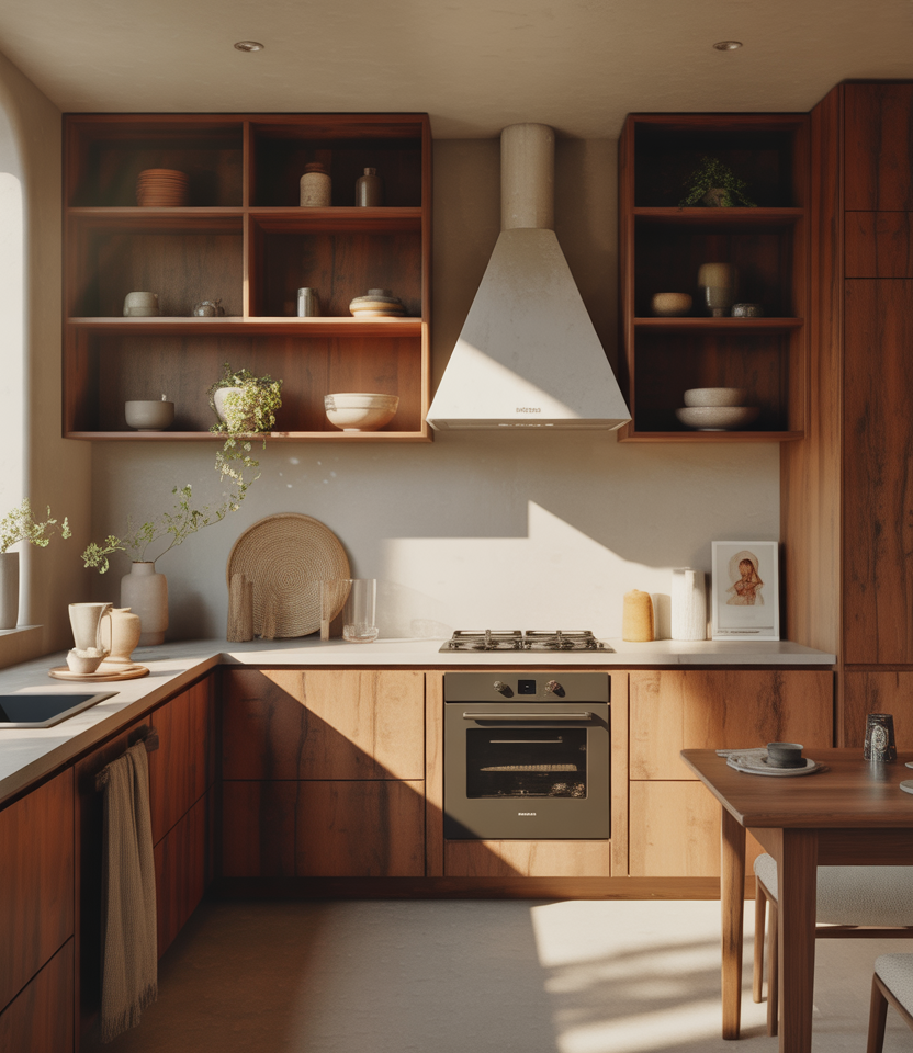 Practical insight: When working with limited square footage, prioritize vertical storage. Using floating shelves efficiently frees counter space and keeps the room feeling open and airy.