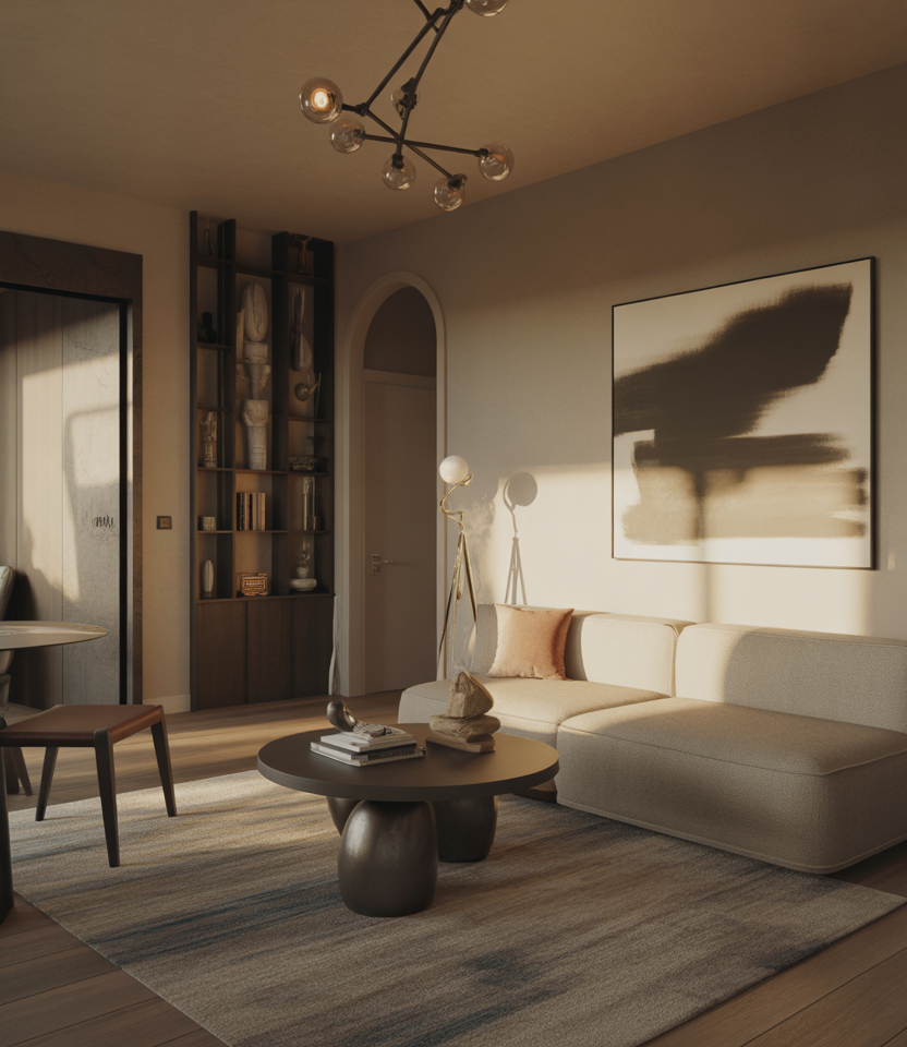 Bold accents can elevate a room instantly, especially when paired with softer textures. Introducing edgy black metals, moody artwork, or sculptural pieces creates dynamic contrast. Blending these with hints of gothic warmth or compact small-space layouts keeps the look dramatic yet livable.
