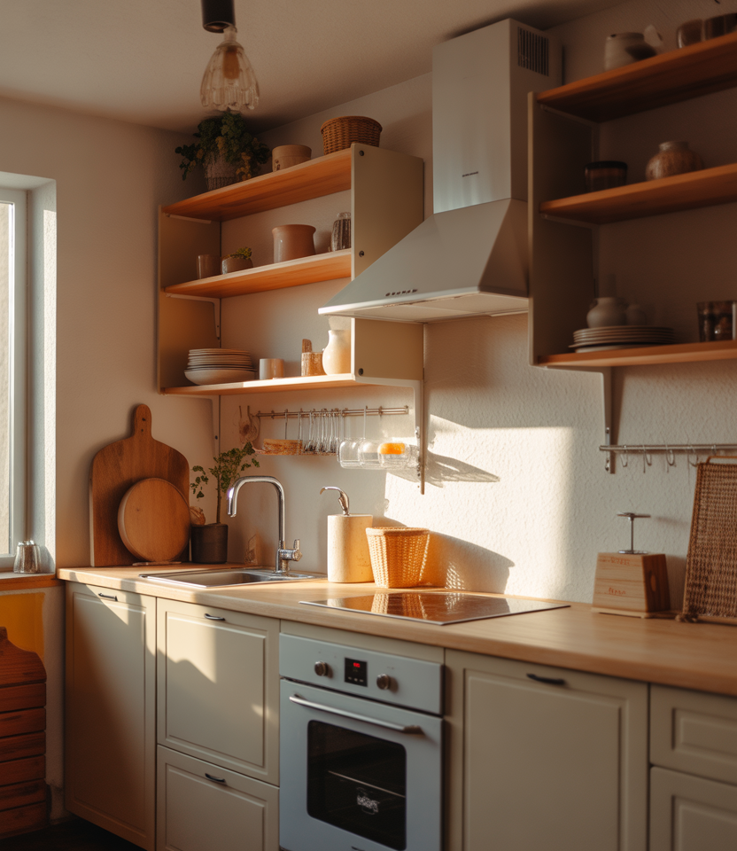 Compact kitchens can feel charming and functional with a few thoughtful choices. Light woods, open shelving, and soft linens bring warmth without crowding the room. Subtle touches of small-space styling, mixed with gentle aesthetic textures or simple DIY upgrades, help the area feel naturally inviting and practical.