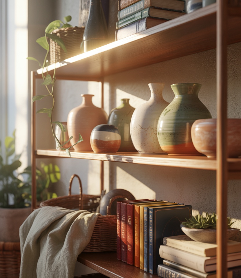 Refreshing shelves with curated color accents brings instant vibrancy. Mixing books, ceramics, and natural textures adds depth without clutter. Incorporating colorful décor, gentle hints of Easter, or crafted DIY touches makes the display feel lively yet cohesive, perfect for both apartments and spacious homes.