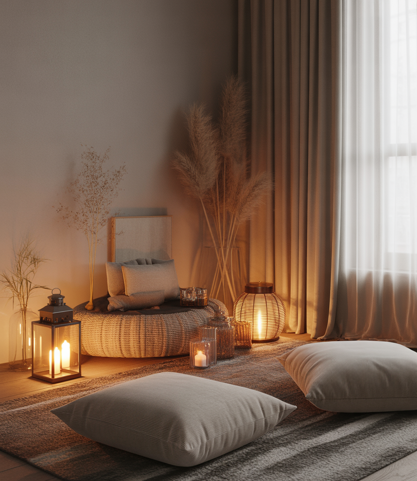 Soft light is central to creating atmosphere during celebrations. Introducing warm lanterns, delicate candles, and gentle metallic accents adds subtle sparkle. Incorporating notes of Diwali radiance, warm aesthetic elements, or muted rustic textures makes the space feel celebratory yet calm, fitting seamlessly into modern interiors.