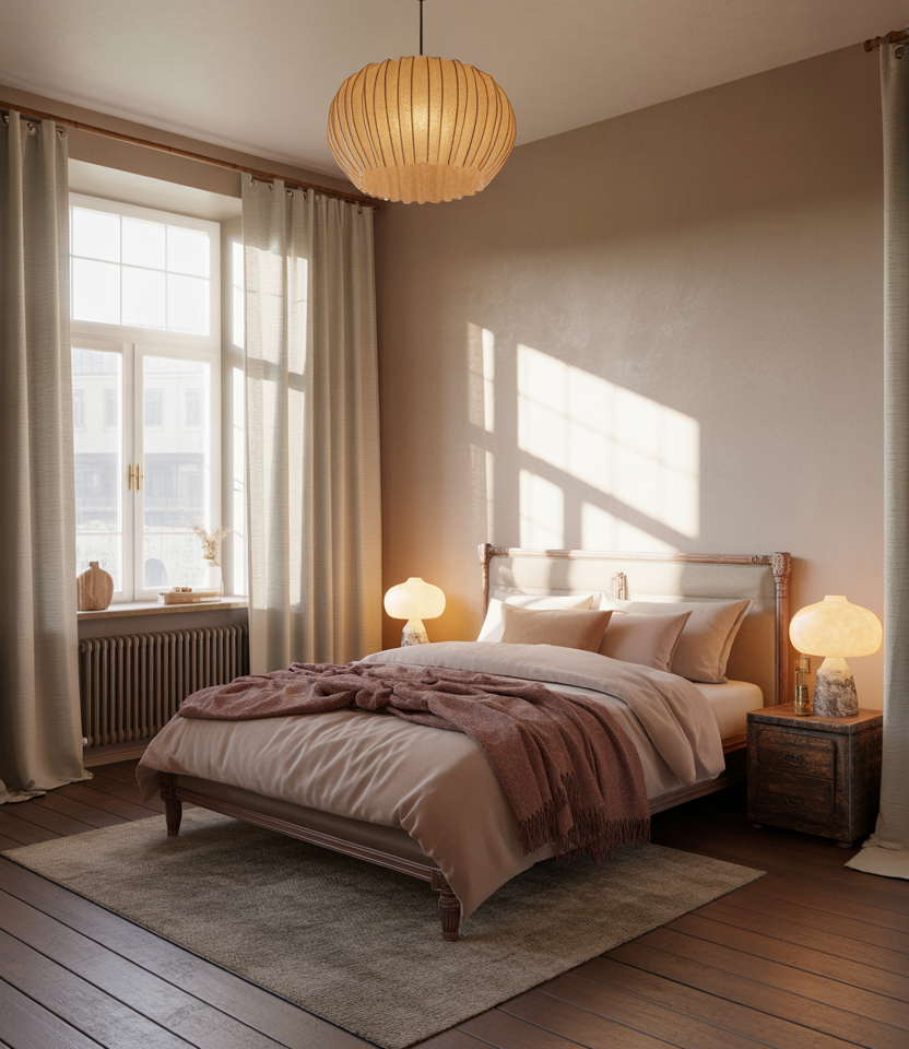 Bedrooms benefit from understated elegance, especially when paired with soft vintage touches. Mixing distressed frames, warm textiles, and muted tones creates a serene atmosphere. Adding hints of antique charm, soft bathroom-adjacent textiles, or muted January palettes helps the space feel restful and timeless.