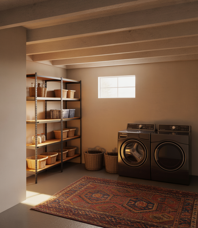 From a budget angle, this is one of the most cost-effective updates you can make. A gallon of masonry paint, an oversized indoor-outdoor rug, and a pair of affordable shelving units can completely change the mood. Instead of chasing a full remodel, concentrate dollars on good lighting and functional organizers. That way, if you later finish the basement, your laundry setup can migrate into new walls without wasting what you already bought.