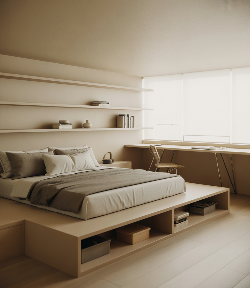 8 Neutral Lofted Bed for Minimalists